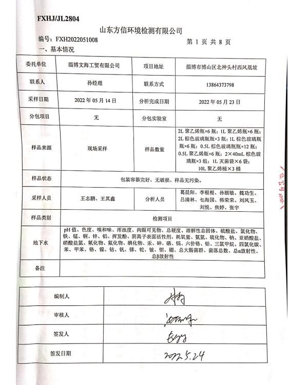地下水檢測(cè)報(bào)告